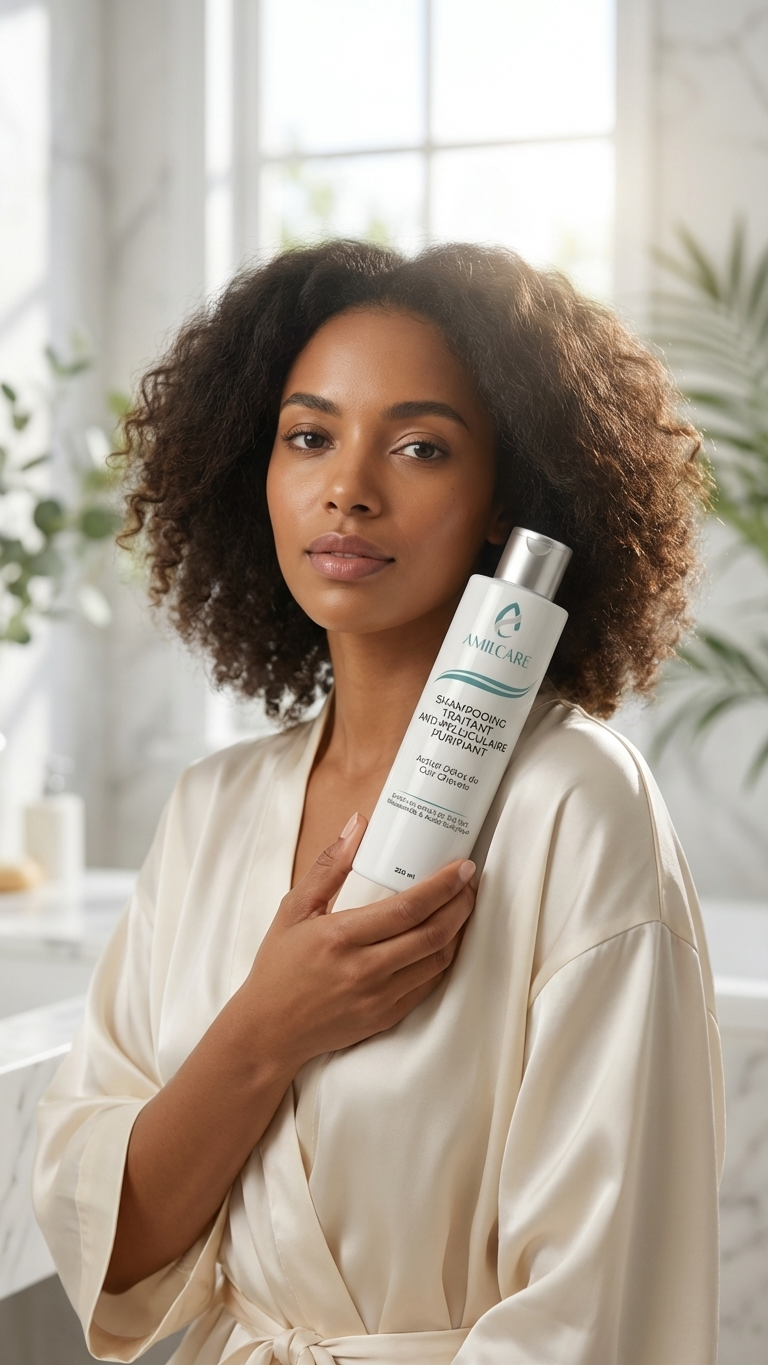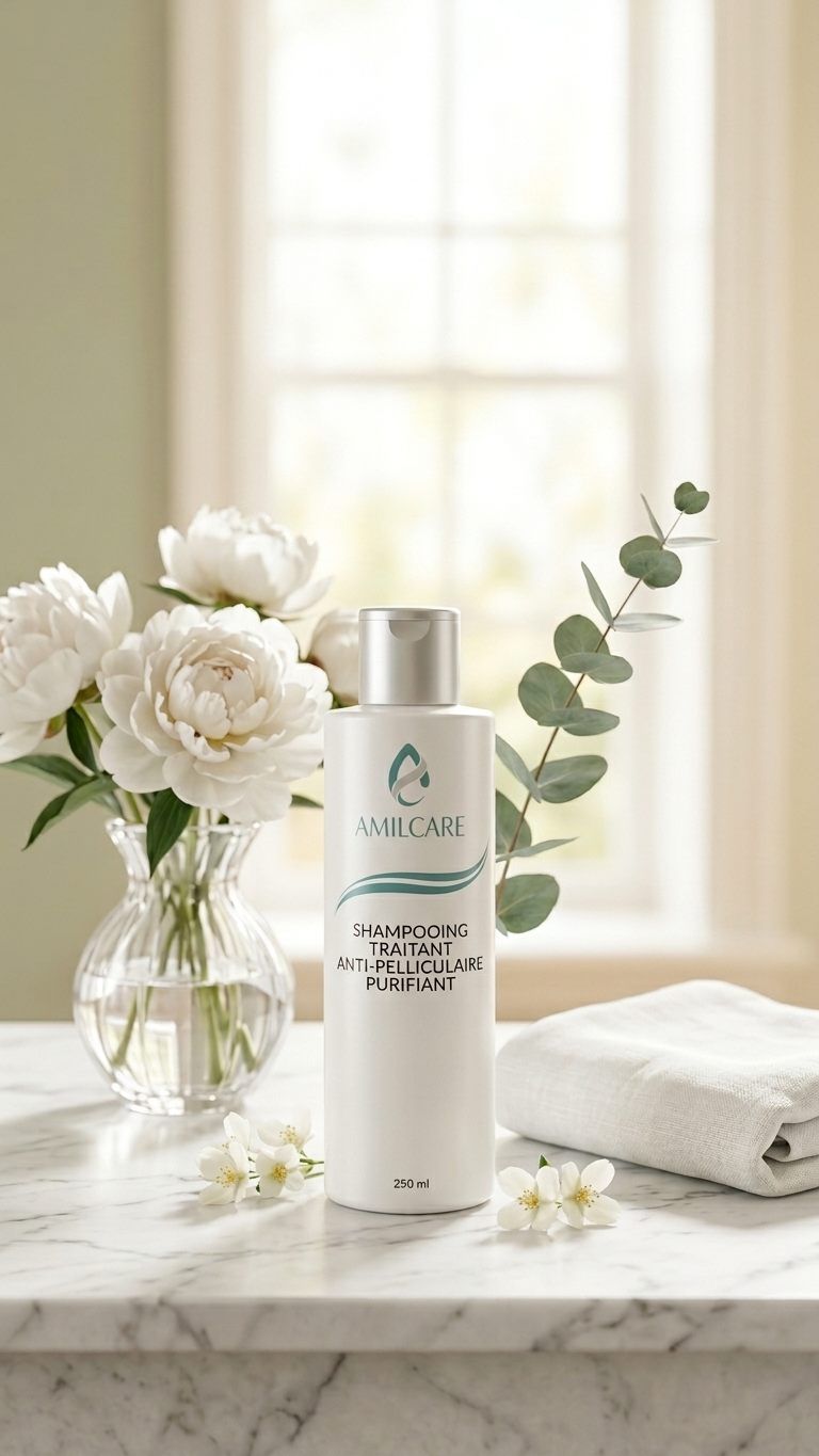 Le Shampooing Purifiant Amilcare nettoie en profondeur sans agresser. Sa formule certifiée ISO 22716 garantit une efficacité optimale et une tolérance maximale pour les cuirs chevelus les plus sensibles.