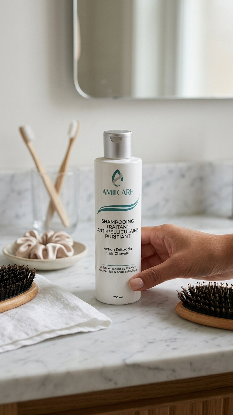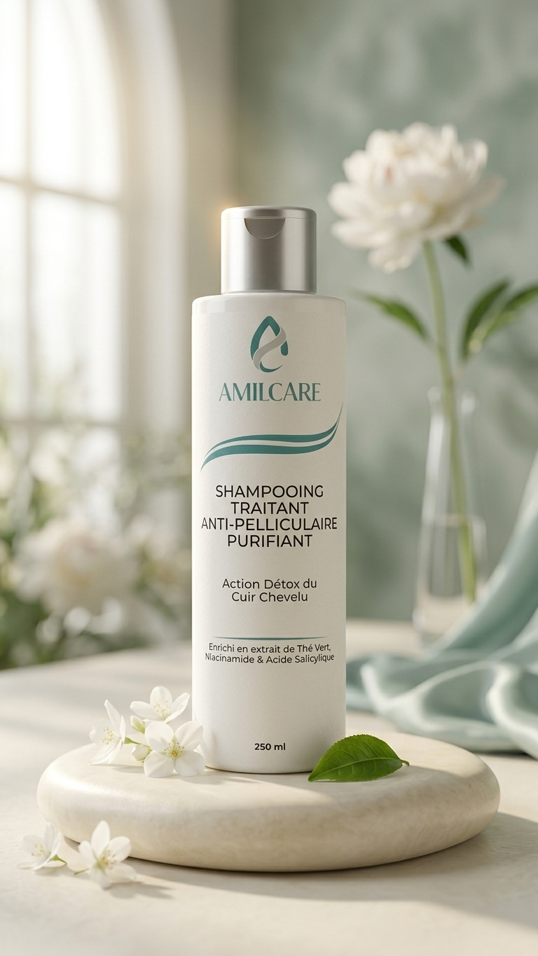 Rétablissez l'équilibre naturel de votre cuir chevelu avec le rituel Amilcare. Notre duo enrichi en Niacinamide et Acide Salicylique élimine les impuretés tout en apaisant les irritations pour un confort durable au quotidien.